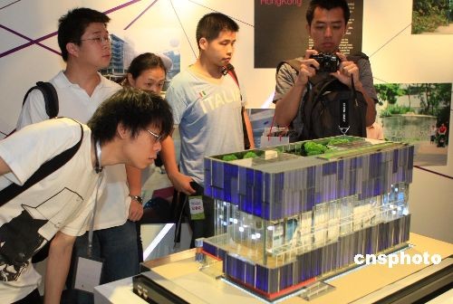資料圖:世博會(huì)香港館模型吸引參觀者。 中新社發(fā) 湯彥俊 攝