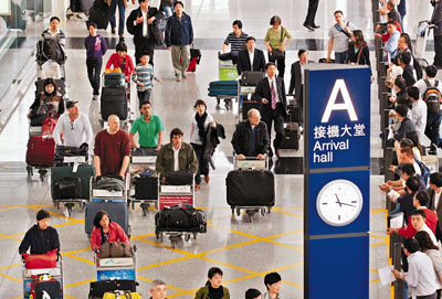 復(fù)活節(jié)長假期昨日結(jié)束,大量外游市民乘飛機(jī)回港。