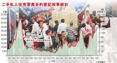 中原地產(chǎn)研究部聯(lián)席董事黃良升指出,今年樓價(jià)升勢持續(xù),帶動(dòng)二手市場買賣金額,今年以來二手私人住宅買賣合約登記總值暫時(shí)錄得2996.3億元,率先打破去年全年總和;登記宗數(shù)暫錄80714宗,比去年全年的88364宗少8.7%,預(yù)料在10月二手登記宗數(shù)將突破去年全年。