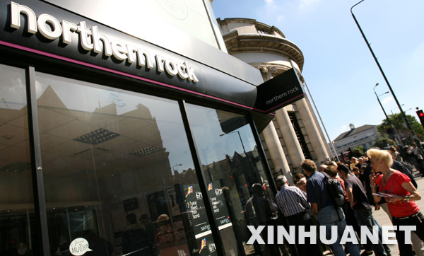 9月15日,在英國倫敦,儲戶在諾森羅克銀行的一家營業(yè)所外排隊(duì)等待取款。僅14日當(dāng)天,諾森羅克銀行就有約10億英鎊(約合20億美元)的存款被儲戶提走。 新華社記者謝秀棟攝