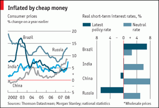 圖片說明:2002-2008年金磚四國通脹走勢