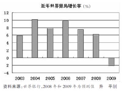 世界銀行近日公布的數(shù)據(jù)顯示,全球貿(mào)易規(guī)模將在2009年出現(xiàn)26年來(lái)的首次縮水。從發(fā)達(dá)國(guó)家到新興市場(chǎng)國(guó)家,消費(fèi)者捂緊錢(qián)袋、外貿(mào)信貸緊縮都讓出口商們一籌莫展。