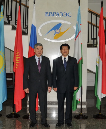 歐亞經(jīng)濟(jì)共同體秘書(shū)長(zhǎng)曼蘇羅夫與李輝大使合影