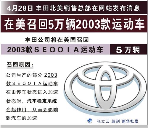 圖表:豐田宣布在美召回5萬(wàn)輛2003款運(yùn)動(dòng)車(chē)新華社發(fā)