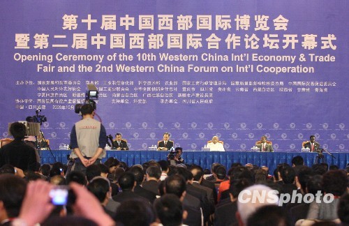 第十屆中國(guó)西部國(guó)際博覽會(huì)暨第二屆中國(guó)西部國(guó)際合作論壇16日上午在成都開幕。國(guó)務(wù)院總理溫家寶出席開幕式并致辭。他強(qiáng)調(diào),中國(guó)將把全面提高西部地區(qū)開發(fā)開放水平放在更加突出的戰(zhàn)略地位,努力把西部地區(qū)建設(shè)成為現(xiàn)代產(chǎn)業(yè)發(fā)展的重要集聚區(qū)域、統(tǒng)籌城鄉(xiāng)改革發(fā)展的示范區(qū)域、生態(tài)文明建設(shè)的先行區(qū)域,加快構(gòu)建具有全局和戰(zhàn)略意義的新的經(jīng)濟(jì)增長(zhǎng)極。