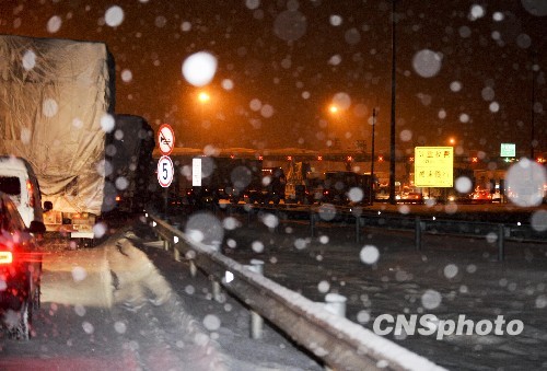1月3日夜間至4日凌晨,眾多車輛滯留在京滬高速至京津塘高速泗村店入口。當(dāng)日,受強(qiáng)降雪和路面結(jié)冰影響,京承高速、京津高速、京津塘高速均采取道路封閉和分流措施。 中新社發(fā) 廖攀 攝