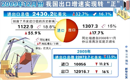 圖表:我國2009年12月出口增速實現(xiàn)轉“正” 新華社發(fā)