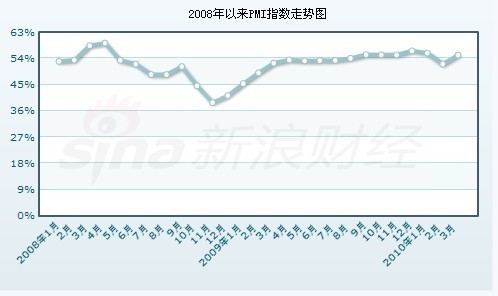 2010年3月份中國物流與采購聯(lián)合會發(fā)布中國制造業(yè)采購經(jīng)理指數(shù)為55.1%
