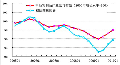 2010年一季度中經(jīng)乳制品產(chǎn)業(yè)景氣指數(shù)98.1