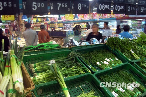 2010年5月9日,江蘇蘇州,市民正在選購新鮮蔬菜。據(jù)蘇州市物價(jià)局監(jiān)測(cè)數(shù)據(jù)表明,5月7日蘇州蔬菜綜合平均批發(fā)價(jià)指數(shù)每市斤1.42元,比5日1.56元的價(jià)格指數(shù)下跌4%,蔬菜價(jià)格繼續(xù)呈下降態(tài)勢(shì)。 當(dāng)季蔬菜價(jià)格跌幅8%--30%之間。 中新社發(fā) 李俊鋒 攝