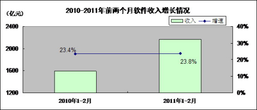 中新網(wǎng)3月25日電今天,工信部發(fā)布1-2月軟件業(yè)經(jīng)濟(jì)運(yùn)行情況,數(shù)據(jù)顯示,2011年1-2月,我國軟件產(chǎn)業(yè)實(shí)現(xiàn)軟件業(yè)務(wù)收入2167億元,同比增長23.8%,增速比去年同期提高0.4個百分點(diǎn)。完成利潤總額271.5億元,同比增長31%,增速比去年同期高20.1個百分點(diǎn)。
