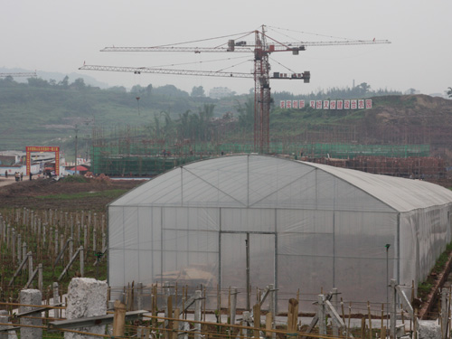 位于重慶市北碚區(qū)的重慶臺灣農(nóng)民創(chuàng)業(yè)園,仍然在不斷建設(shè)當(dāng)中,近處的大棚則是火龍果的育苗大棚。(中國臺灣網(wǎng) 楊麗 攝)
