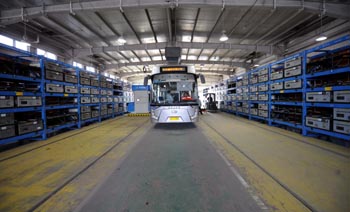 這是純電動公交車更換電池的“加油站”。目前,北京市擁有100輛純電動車和870輛油電混合動力車。新華社記者 李文 攝