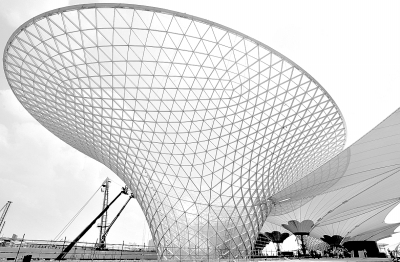 上海世博會(huì)世博軸“陽光谷”。上海世博園集成了大跨度索膜結(jié)構(gòu)、“陽光谷”自然采光、雨水收集與回用、江水源和地源熱泵調(diào)控室溫以及冰蓄冷空調(diào)、光伏發(fā)電與建筑一體化、透水地面、垃圾氣力輸送、半導(dǎo)體照明、垂直生態(tài)綠化幕墻、節(jié)能電梯等一大批創(chuàng)新科技。 新華社記者 任瓏 攝