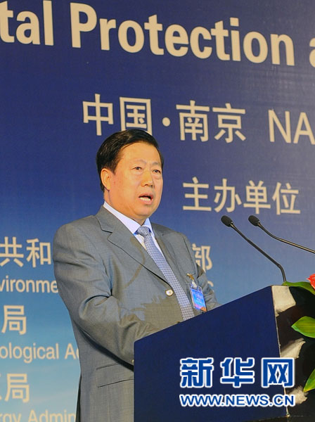 7月3日,由環(huán)境保護(hù)部、國家氣象局、國家能源局、聯(lián)合國環(huán)境規(guī)劃署和中國2010年上海世博會(huì)執(zhí)行委員會(huì)共同主辦的上海世博會(huì)第四場(chǎng)主題論壇——“環(huán)境變化與城市責(zé)任”在南京開幕。圖為環(huán)境保護(hù)部部長周生賢在論壇上演講。 新華社記者 陳琪攝