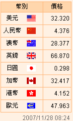 臺幣匯率公告2007.11.28