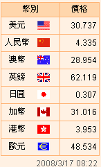 臺(tái)幣匯率公告2008.03.17