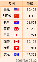 臺(tái)幣匯率公告2008.05.05