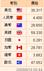 臺(tái)幣匯率公告2008.06.18