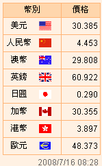 臺(tái)幣匯率公告2008.07.16