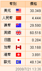 臺(tái)幣匯率公告2008.07.21