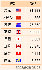 臺幣匯率公告2008.09.26
