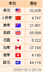 臺幣匯率公告2008.10.13