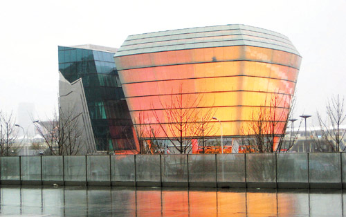 “山水心燈”不僅傳達(dá)平安祈福的意向,同時(shí)巨型的玻璃燈罩及里面的“臺(tái)灣之心”—LED球幕,更兼具外部播放的媒體與內(nèi)部展演的劇場(chǎng),演繹臺(tái)灣自然之美及多元的人文薈萃。