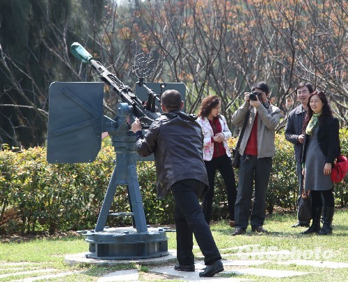 目前中國大陸已有25個省市居民可經(jīng)福建與金門、媽祖的“小三通”通道赴臺旅游,金門因而成為大陸游客的旅游新熱點(diǎn)。圖為金門的戰(zhàn)地景物吸引大陸游客攝影留念。 中新社發(fā) 耿軍 攝
