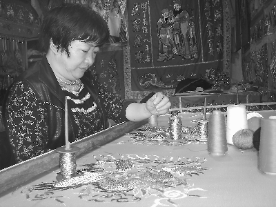 這些刺繡店原來都是靠祖?zhèn)魇炙嚩ㄗ銎蜗蓱驊蚍。近年來,隨著兩岸交流日趨熱絡(luò),臺(tái)灣和東南亞地區(qū)信眾對(duì)刺繡桌裙、宮廟里懸掛的八仙彩以及佛像穿戴用的神袍需求與日俱增,這些刺繡店及時(shí)調(diào)整產(chǎn)品結(jié)構(gòu),在保留制作莆仙戲龍袍的同時(shí),又投資購(gòu)買刺繡用的縫紉機(jī)械,創(chuàng)辦刺繡工場(chǎng),大批量生產(chǎn)機(jī)繡桌裙等佛事用品。同時(shí),他們發(fā)揮祖?zhèn)魇止ご汤C精致、逼真等技藝優(yōu)勢(shì),積極承接宮廟里佛像龍袍的訂制業(yè)務(wù)。(林亦霞 文/圖)