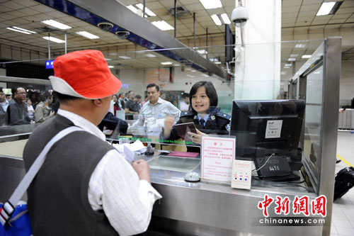 邊檢民警快捷為臺(tái)胞辦理查驗(yàn)手續(xù)。 作者:黃俊生