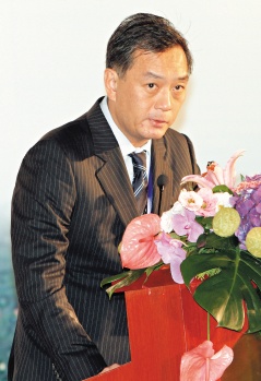 臺灣、浙江經(jīng)貿(mào)文化合作論壇10日上午在臺北圓山飯店舉行,裕隆集團總裁嚴凱泰出席演講。圖片來源:聯(lián)合晚報