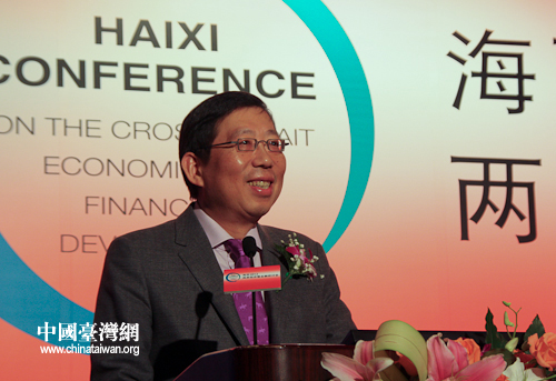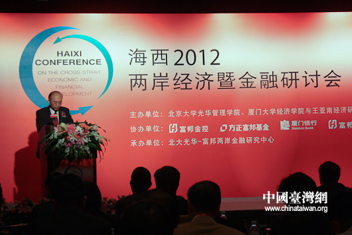 海西2012兩岸經(jīng)濟(jì)暨金融研討會(huì)12日上午首度在北京登場(chǎng)。廈門(mén)大學(xué)鄔大光副校長(zhǎng)出席并致辭。(中國(guó)臺(tái)灣網(wǎng) 楊麗 攝)