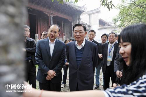 江丙坤一行在襄陽市委副書記施真強(qiáng)等陪同下參觀古隆中。(丁濤 攝)