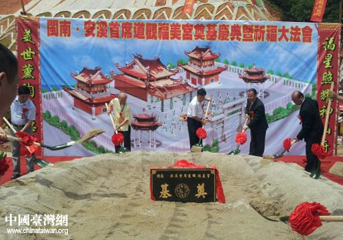 中國(guó)臺(tái)灣網(wǎng)6月19日福建安溪消息 6月18日上午,福建福美宮鞭炮隆隆,鑼鼓喧天。參加第四屆海峽論壇的臺(tái)灣嘉賓參加奠基儀式。來(lái)自臺(tái)灣的原民意代表、海華文教基金會(huì)董事李先仁,臺(tái)灣省李氏宗親總會(huì)第五屆理事長(zhǎng)李章夫,臺(tái)南市議員李錦泉等臺(tái)灣嘉賓與當(dāng)?shù)仡I(lǐng)導(dǎo)、賢達(dá)一起出席了福美宮的奠基儀式,并共同為福美宮揭彩、培土奠基,李先仁先生做了熱情洋溢的講話。
