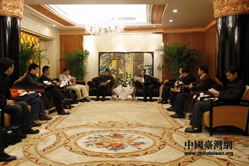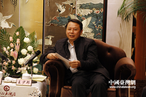 江蘇省政府臺(tái)辦副主任王少邦會(huì)見兩岸記者。(中國臺(tái)灣網(wǎng) 馬迪 攝)