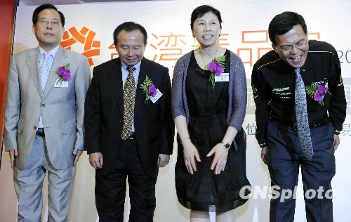 5月26日,臺(tái)灣高科技知名品牌的企業(yè)領(lǐng)導(dǎo)人在北京舉行新聞發(fā)布會(huì),介紹即將在第十三屆中國(guó)北京國(guó)際科技產(chǎn)業(yè)博覽會(huì)上亮相的的“臺(tái)灣精品館”。圖為臺(tái)北世界貿(mào)易中心處長(zhǎng)李惠玲女士(右二)、友訊科技公司執(zhí)行長(zhǎng)曹安邦(左二)、美利達(dá)公司總經(jīng)理許世彥(右一)和雷虎科技公司董事長(zhǎng)賴春霖(左一)等出席儀式。 中新社發(fā) 劉震 攝