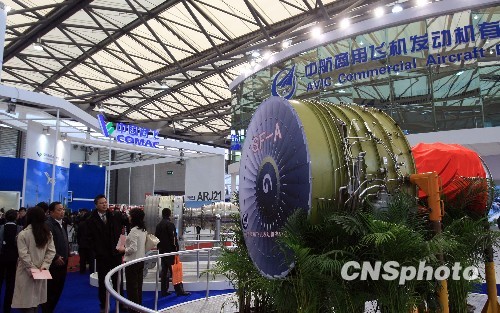 資料圖:2009年11月3日,可匹配未來“國字號”大飛機C919的首款國產(chǎn)飛機發(fā)動機模型,在上海2009中國國際工業(yè)博覽會上亮相,這預示著中國正在邁出大飛機心臟國產(chǎn)化研制的重要步伐。該發(fā)動機型號SF-A,是一款推力范圍為12000至13000公斤力(kgf)的大涵道比渦扇發(fā)動機。 中新社發(fā) 潘索菲 攝