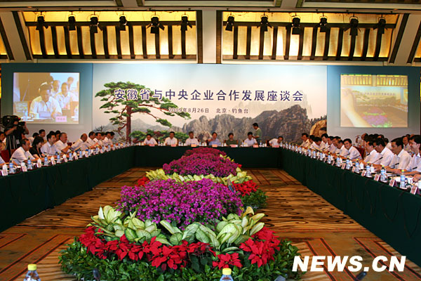 8月26日,安徽省省長(zhǎng)王三運(yùn)率領(lǐng)安徽17個(gè)市負(fù)責(zé)人及省屬企業(yè)主要負(fù)責(zé)人的政府代表團(tuán)進(jìn)京,與中央企業(yè)舉行合作發(fā)展座談會(huì),表達(dá)了安徽省與中央企業(yè)合作聯(lián)姻的誠(chéng)意和強(qiáng)烈愿望。