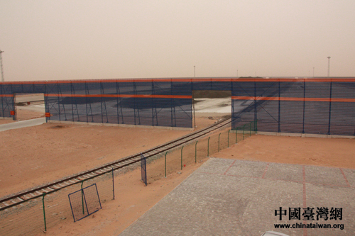 二連鐵路國(guó)際物流園的貨場(chǎng)上堆放著從蒙古國(guó)運(yùn)來(lái)的鐵礦石。(中國(guó)臺(tái)灣網(wǎng) 王怡然 攝)