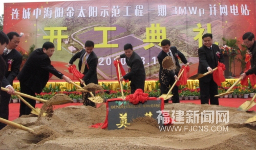 福建新聞網(wǎng)連城3月16日電(黃水林) 福建首座兆瓦級大規(guī)模光伏電站項(xiàng)目——連城中海陽金太陽示范工程一期3MWP(兆瓦)并網(wǎng)電站,16日上午在連城縣工業(yè)園舉行開工奠基儀式。