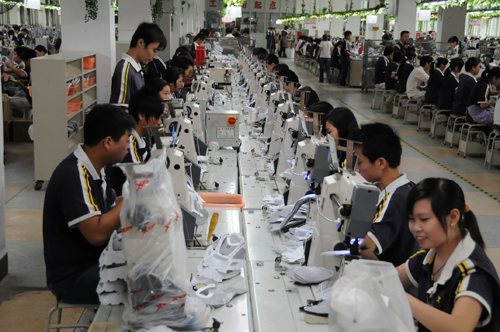 這是8月2日拍攝的泉州市一家大型鞋服企業(yè)生產車間一角。這家企業(yè)積極實施工資集體協商穩(wěn)定職工隊伍。 新華社記者 來建強 攝