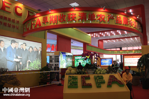 中國臺灣網11月19日漳州報道 第二屆海峽兩岸現(xiàn)代農業(yè)博覽會暨第十二屆海峽兩岸花卉博覽會于昨日正式開幕。本屆博覽會在臺灣展區(qū)顯要位置設立了“ECFA主題展區(qū)”,展銷ECFA早期收獲清單中的農產品,展示ECFA生效后的農業(yè)合作成果和發(fā)展前景,成為新增亮點。(記者 胡珊珊)