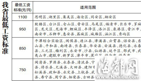 福州市最低工資提至950元 廈門率先突破千元(圖)