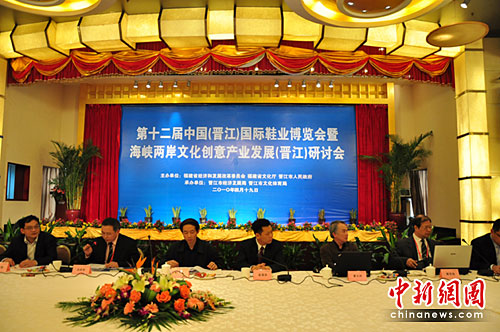 第十二屆中國(晉江)國際鞋業(yè)博覽會暨海峽兩岸文化創(chuàng)意產(chǎn)業(yè)發(fā)展(晉江)研討會現(xiàn)場。