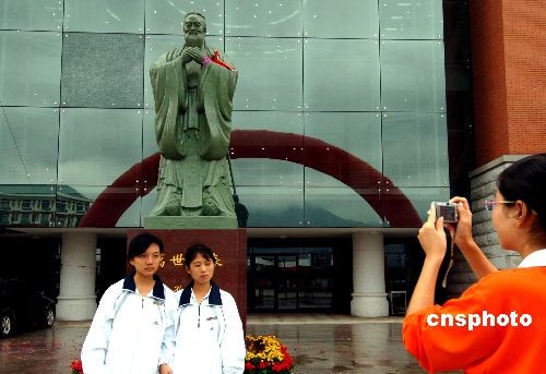 資料圖:二零零八年十一月八日,由著名雕塑家陳一帆雕塑的孔子塑像在福建中醫(yī)學(xué)院福州旗山校區(qū)落成。當(dāng)日,福建中醫(yī)學(xué)院建校五十周年慶祝大會在福州旗山校區(qū)隆重舉行。來自海內(nèi)外的福建中醫(yī)學(xué)院校友、來賓及在校師生六千多人出席該學(xué)院建校五十周年慶祝大會。 中新社發(fā) 劉可耕 攝
