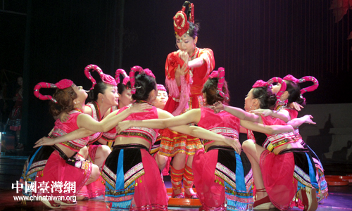 臺(tái)灣少數(shù)民族人文舞蹈團(tuán)表演的民族舞蹈《歡樂在海西》、《海峽慶豐收》展現(xiàn)了兩岸少數(shù)民族民俗、經(jīng)濟(jì)與人文的融合與互動(dòng)。