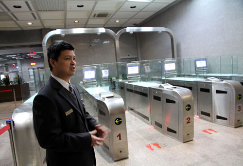 臺“移民署”新建置的旅客入出境自動查驗通關系統(tǒng),預定月底前在金門“小三通”通關中心試營運,再擴展到臺灣4個機場,讓民眾入出境更便利。圖片來源:“中央社”