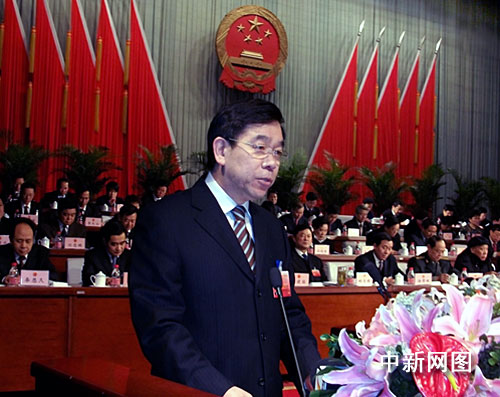 圖為唐山市市長(zhǎng)陳國(guó)鷹在做政府工作報(bào)告。