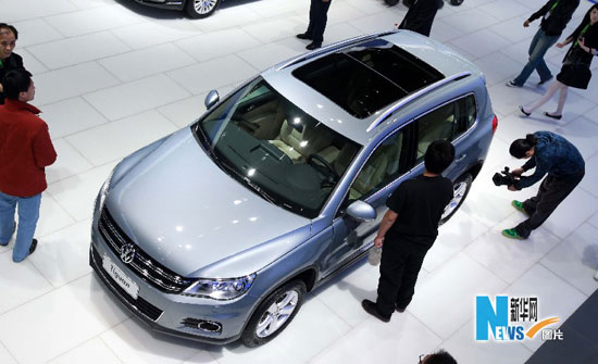 4月24日,記者在2010(第十一屆)北京國(guó)際汽車展覽會(huì)上拍攝上海大眾的SUV汽車——途觀(Tiguan)。新華社記者龐興雷攝